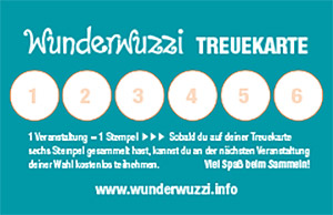 Sammel hier mit der Wunderwuzzi-Treukarte sechs Stempel und nehme das siebte Mal kostenlos an einem Event teil.